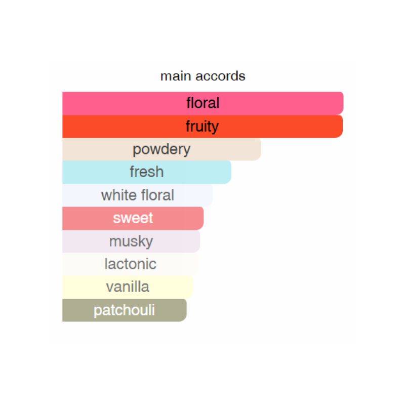 middle notes are Osmanthus, Jasmine and Heliotrope;