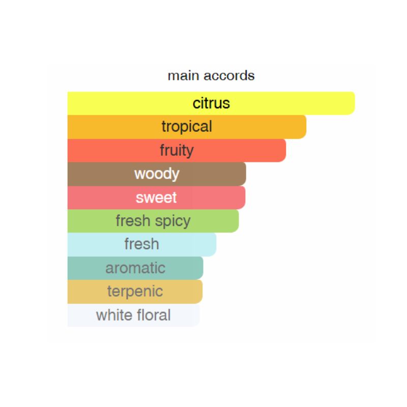 Top notes are Mango, Grapefruit, Lemon and Ginger;