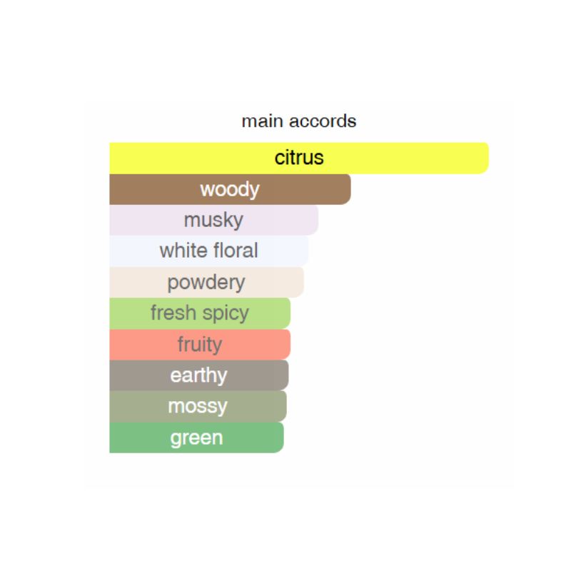 Top notes are Lemon Zest, Bergamot, Apple, Petitgrain and Neroli;